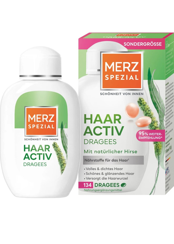 دراژه های Haar-Activ از Merz Spezial در آلمان ساخته شده اند و حاوی بلوک های ساختمانی L-cysteine هستند. علاوه بر ارزن طبیعی، مکمل غذایی بدون گلوتن است و از جمله مس، که برای رنگدانه مو بسیار ارزشمند است، و همچنین بیوتین و زینک که از حفظ موهای طبیعی حمایت می کنند، مو را تامین می کند.