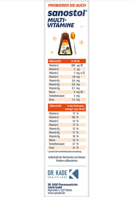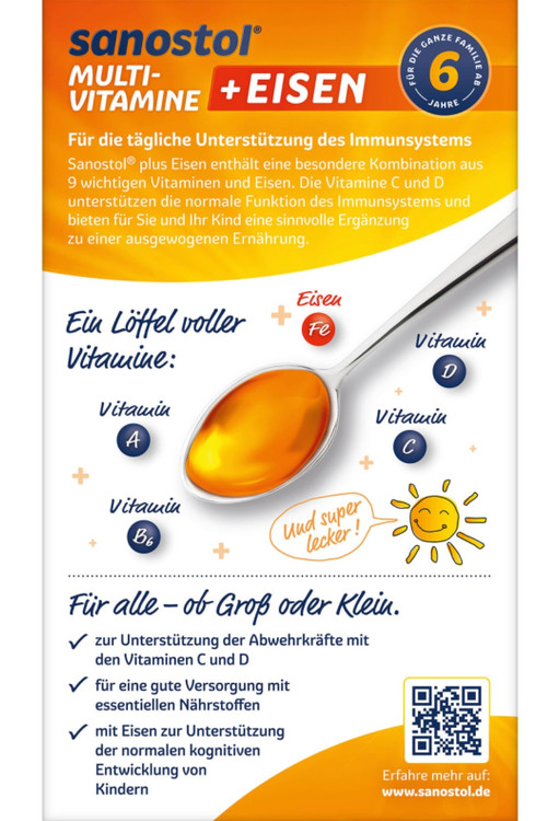 کودکان بالای 6 سال و بزرگسالان روزانه 10 میلی لیتر شربت مولتی ویتامین و آهن Sanostol را میل کنند.