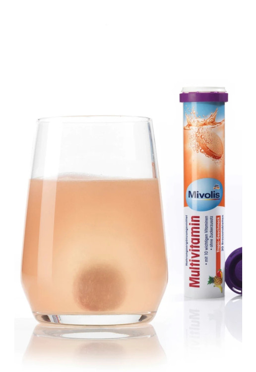 روزانه یک عدد قرص جوشان مولتی ویتامین Mivolis را در 200 میلی لیتر آب حل کرده و سپس میل کنید.